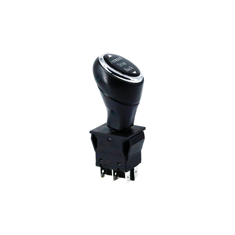Utseendemässigt har omkopplaren i R11-68-serien en kompakt och elegant design av svart plast, som erbjuder både hållbarhet och ett bekvämt grepp. Handtaget är cylindriskt med en slät yta, vilket säkerställer enkel manövrering och minimerar risken för oavsiktlig felmanövrering. Tydliga etiketter på handtagets ovansida indikerar de olika positionerna: "Framåt" (framåt), "Stopp" (stopp) och "Bakåt" (bakåt), vilket gör att användarna snabbt kan identifiera och växla mellan lägen.