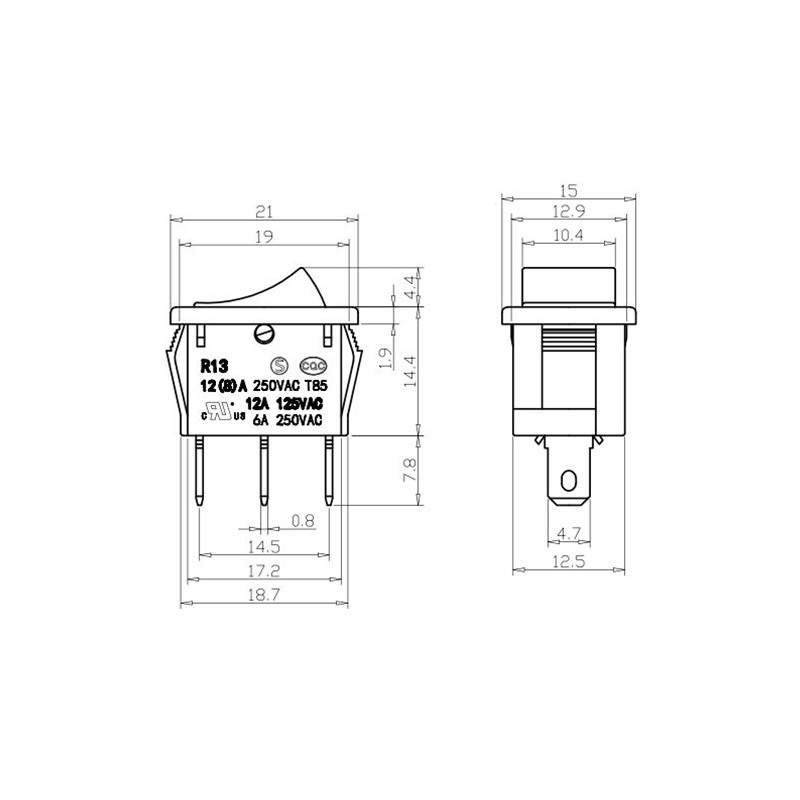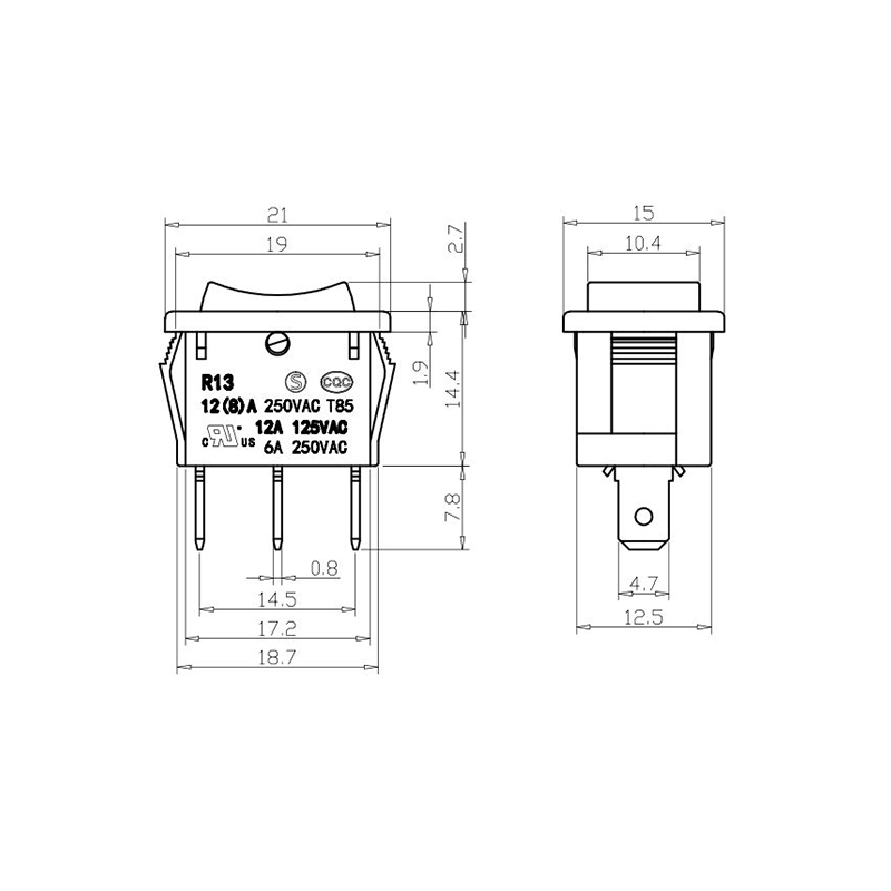 Shanghai Qijia Electronics Co., Ltd. Hem / Produkter / Vippbrytare / R13 vippbrytare / R13-11 vippbrytare